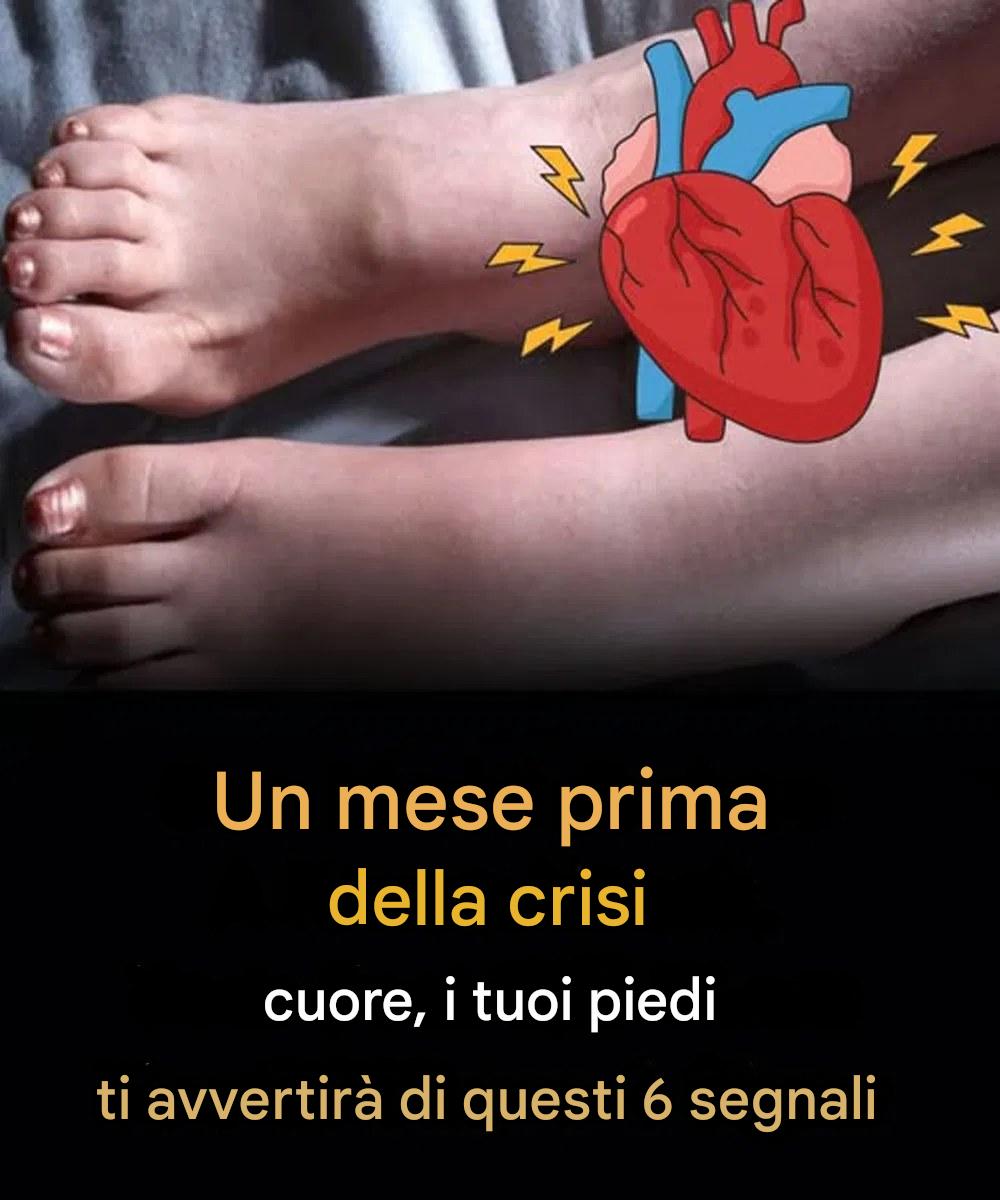 I piedi possono rivelare sottili indizi sulla salute cardiovascolare e, in alcuni casi, i segnali d'allarme possono comparire fino a un mese (o più) prima di un infarto. Questi segnali non sono definitivi, ma possono indicare una cattiva circolazione o una disfunzione cardiaca che richiede cure mediche.