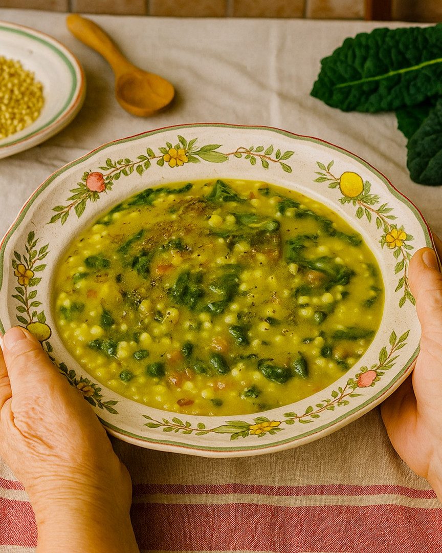 La fregola sarda, con la sua consistenza unica, si sposa perfettamente con la dolcezza del cavolo nero e la morbidezza dei ceci frullati, dando vita a un piatto rustico ma raffinato, pronto in poco tempo e adatto a chi ama mangiare sano senza rinunciare al piacere.
