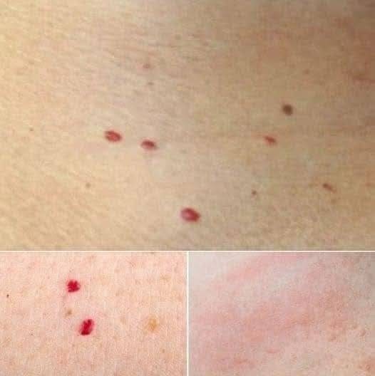 Si presentano come piccole protuberanze in rilievo, di colore rosso vivo, e derivano da una crescita eccessiva dei vasi sanguigni. Gli angiomi rubino sono solitamente completamente innocui e spesso diventano più comuni con l'età.
