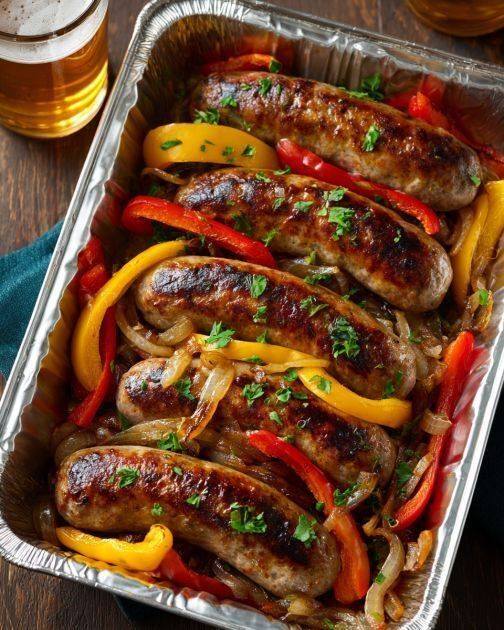 Questa teglia di salsicce e peperoni al forno semplifica la preparazione dei pasti infrasettimanali. Tutti gli ingredienti – salsicce italiane, peperoni e cipolle – vengono arrostiti insieme in un'unica padella, per una cena saporita e appagante, senza dover lavare una pila di piatti.