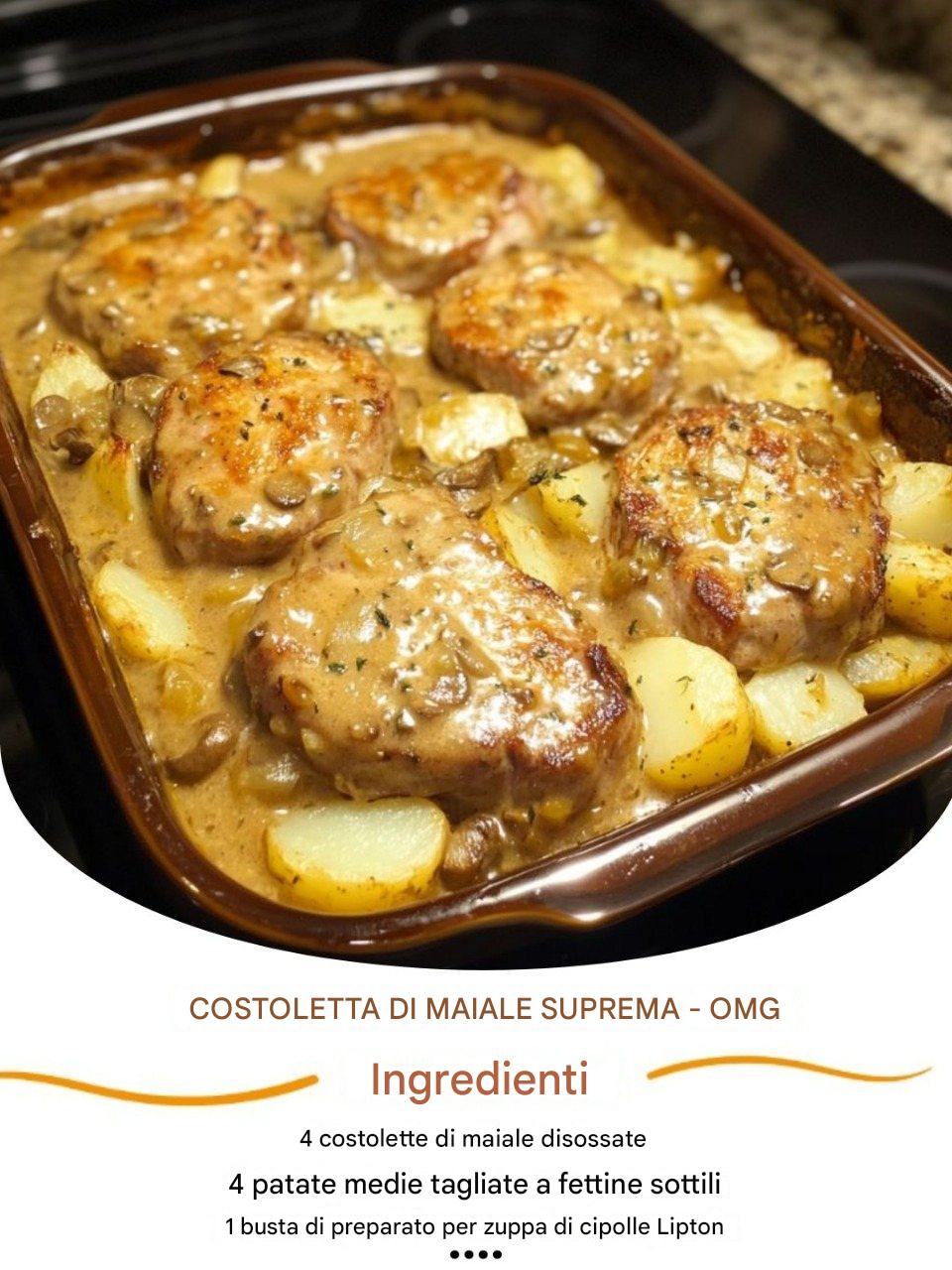 Questo piatto di costolette di maiale è di qualità da ristorante ed è un'esplosione di sapore: tenere costolette di maiale scottate in padella, ricoperte da una ricca e cremosa salsa di funghi, cipolle e formaggio. Una vera delizia, perfetta per una cena veloce infrasettimanale o per un'occasione speciale!