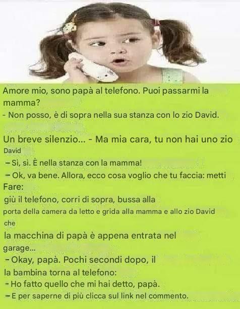Dopo qualche secondo, qualcuno ripose. C'était une petite fille. Il padre le chiese : "Ciao tesoro, sono papa al telefono... Puoi passarmi la mamma ?"
