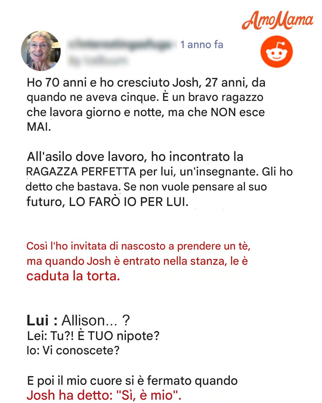 "Devi uscire di più, Josh", gli dissi. "Voglio che tu viva la tua vita al massimo! Non vuoi incontrare qualcuno?"