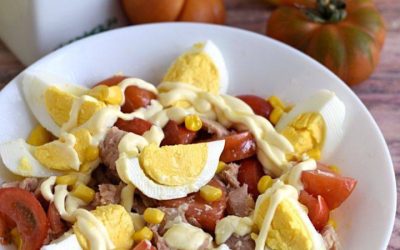 Ingredienti (per 2 persone): 100 g di insalata mista (lattuga, rucola, radicchio, spinacini…) 2 uova sode 1 scatoletta di tonno…