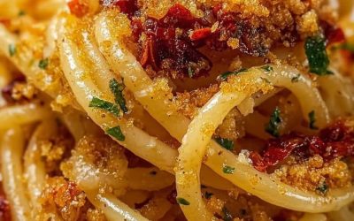 Ingredienti400g di spaghettoni4 spicchi d'aglio120ml di olio d'oliva1 peperoncino rosso100g di pomodori secchi100g di mollica di paneSale q.b.Prezzemolo fresco per…